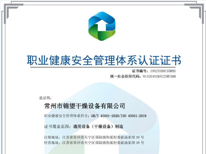 职业健康安全管理体系认证证书