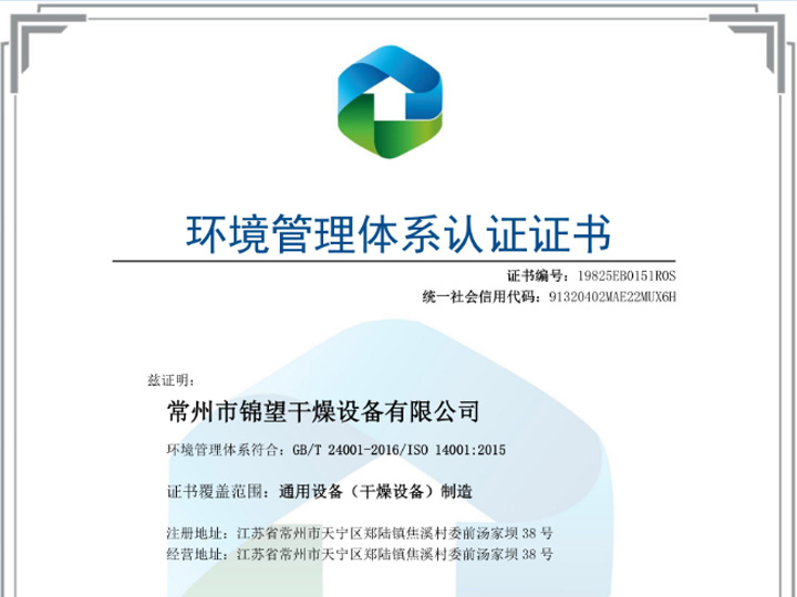 环境管理体系认证证书